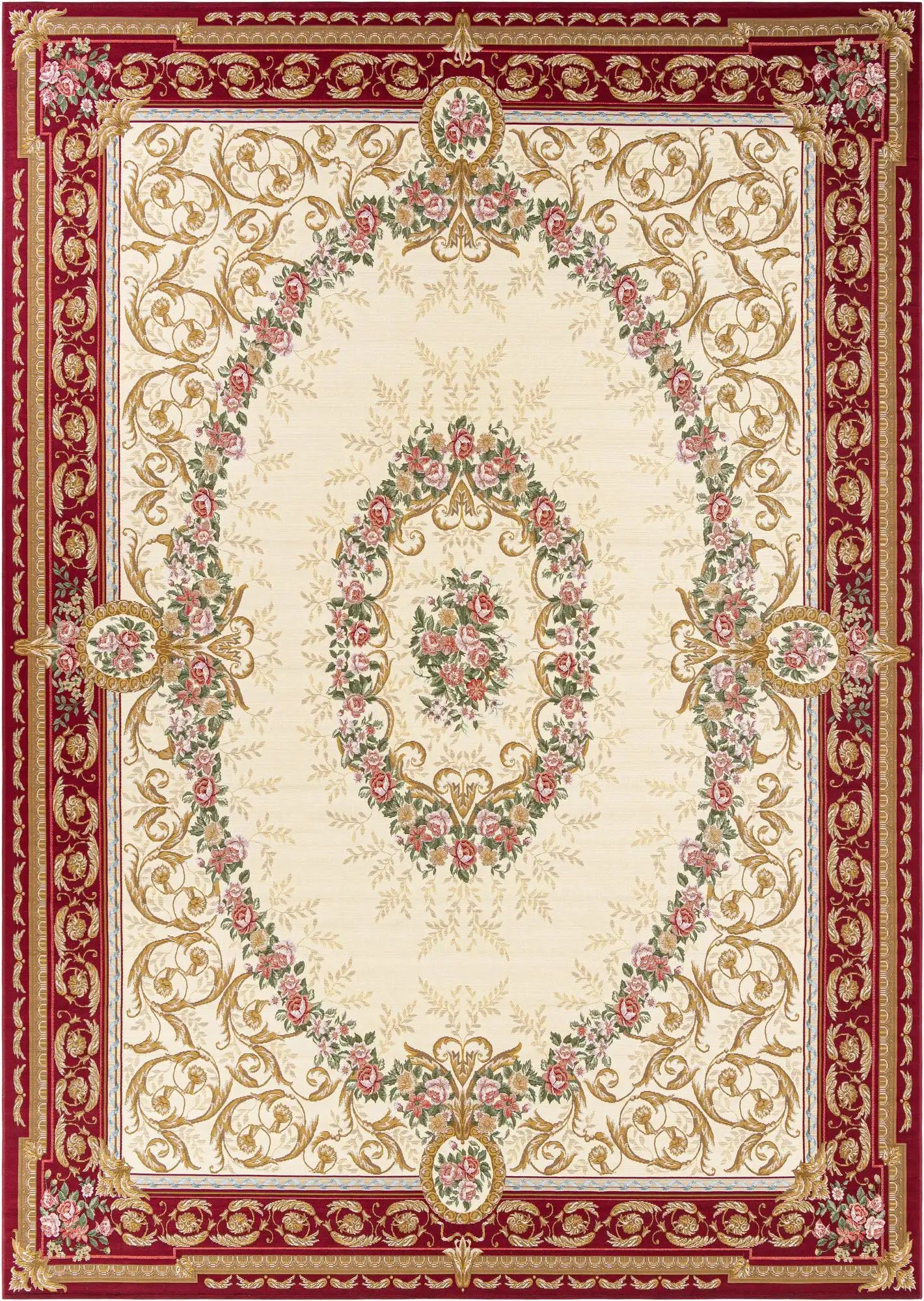 Classical Ribbons and Roses Burgundy Rug - Flora Design