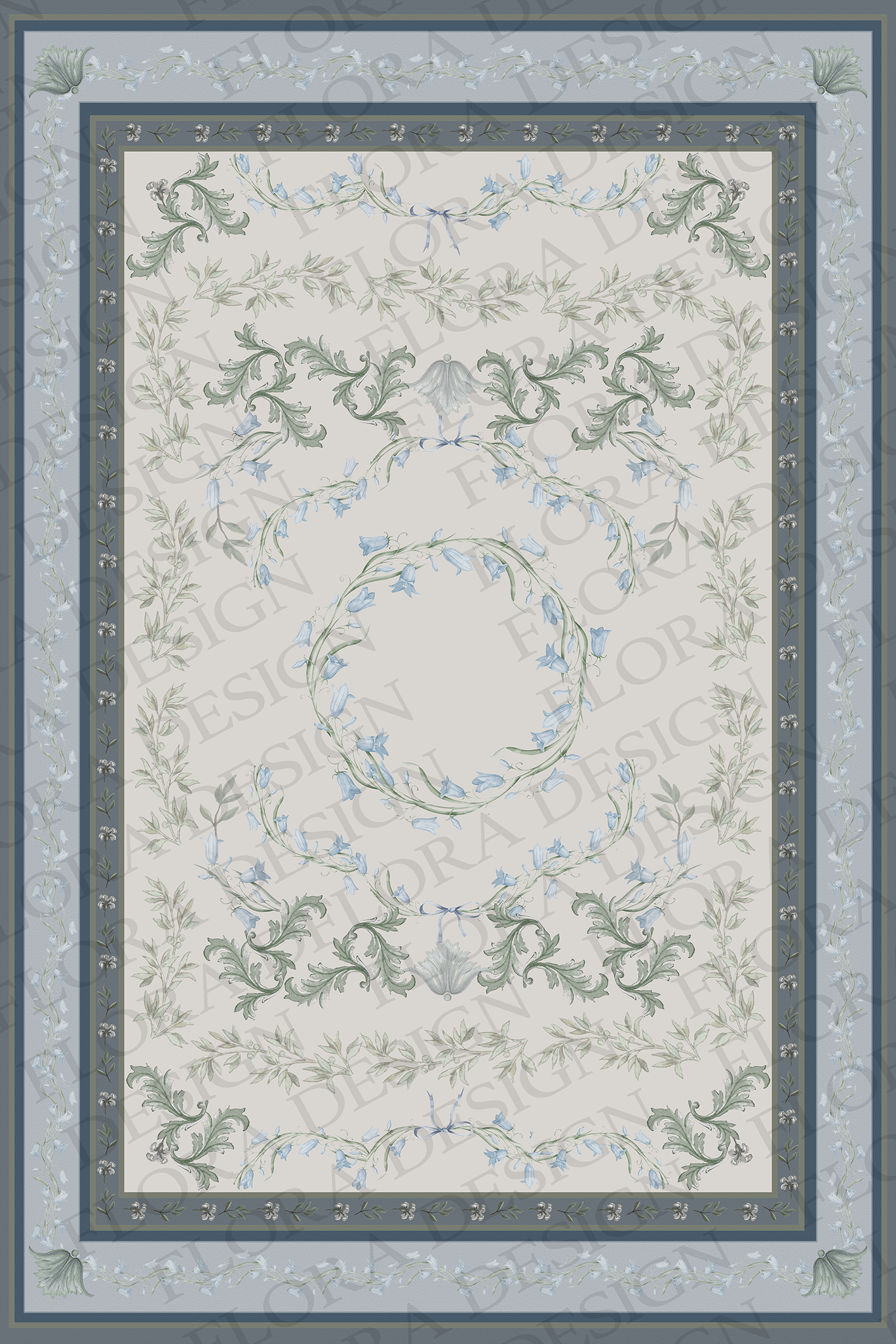 Beige with Blue Ribbons Rug- PRE ORDER 4-8 weeks - Flora Design